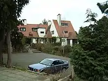 Baillie Scott’s Arts and Crafts style Sandford House Hotel, taking the earlier form of the area's name, lies immediately to the station's west, just into Kilmany parish.[5][1][2][6][7] Its restoration as a residence and holiday cottages was documented in the BBC television series Restoration Home.[8][9][10]
