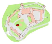 Map with the location of St George's Chapel (in red) on Wawel Hill