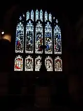 The church spire is a landmark of the town. The earliest parts of the church are late 12th- or early 13th-century. Some of the windows are 14th-century and the building was remodelled in the 15th and 16th centuries.[3] The building was restored in 1869–73 to plans by the Gothic Revival architect Henry Woodyer.[4] Of note within the church are the painted ceiling panels of the north aisle, dating from about 1390 and representing the Tree of Jesse.[5] The church is a Grade I listed building.[6]
