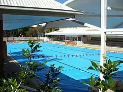 Built in 1995, the St Hilda's School Sports complex features indoor courts suitable for basketball, netball, badminton, and volleyball; a fitness gym; an artistic and rhythmic gymnastics area including a foam pit, balance beams and vaulting horse; and a 50m heated outdoor swimming pool. The School also has one oval and outdoor tennis and netball courts. The School previously owned hockey fields opposite the Gold Coast Hospital but this land was sold and is now developed as part of the redevelopment of the Gold Coast Hospital precinct.