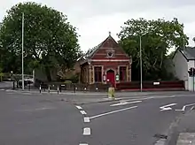 The building is surrounded by a wall with iron palisading and a pavement of tesselated tiles leads to the double door.[2] New paving was laid in 2016 to provide wheelchair access.[10]