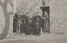 The college building was designed by the Australian ecclesiastical architect John Horbury Hunt.[7] (Hunt had designed the cathedrals in Grafton, Newcastle and Armidale.) The bishop was the first warden and did all the lecturing; there were just five students.[8] [9] The college was dedicated in 1899 by Saumarez Smith, Archbishop of Sydney.[10] Three further wardens followed in short succession, adding new buildings.[11] The visionary churchman[12] Ernest Burgmann was appointed Warden in 1918, which was to be transformative for the college.[13] On the invitation of Reginald Stephen, Bishop of Newcastle, in 1925 Burgmann moved the college to Morpeth.[14] The Armidale college buildings now form part of the New England Girls' School.[15] A stained glass window that had gone with the college to Morpeth was returned to NEGS in 2012.[16]