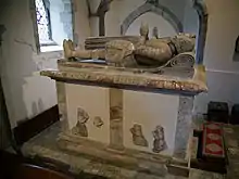 The Smyth family were important in the village, through to 1721.[3] In the south aisle there is an altar-tomb of Thomas Smyth (died 1594) and his wife Margaret. There are floor slabs in the chancel and nave, of the 17th and 18th centuries, of family members.[1]