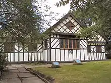 St Lawrence's Church in Denton (grid reference SJ92639506) is a timber-framed church and a Grade II* listed building; it is one of only 29 surviving timber framed churches and chapels in England. The chapelry of Denton was established in 1531 with the construction of the chapel of ease, then Roman Catholic in the Diocese of Lichfield and dedicated to St James.[1][2]