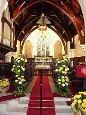 Scarisbrick became an independent parish on 14 December 1869, with the Reverend W. R. Ramsden as its first vicar. In 1878 the Marquis and Marchioness de Castéja gave additional land to St Mark's in order to extend the churchyard and build a school.[1] Enlargements to the church building were made in 1908 by William Edward Willink of Liverpool, with the addition of a new vestry and porch and various alterations to the interior.[3][4]