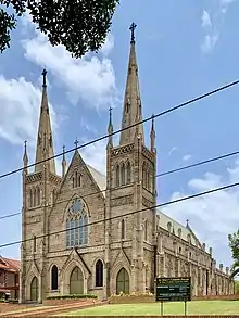 On 25 October 1858, Archbishop of Sydney John Bede Polding laid the foundation stone for a new stone church.[3] The first mass was conducted on Sunday 4 December 1860 by Reverend W. McGinty.[4] The consecration of the church had to await the arrival of the first Bishop of Brisbane, James Quinn and was performed by Cardinal James Freeman.[5][6][7]