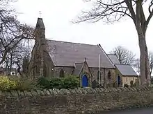 In 1850 Knott's Mill was built in the village, some distance from the nearest church of St Luke. Initially services were held in the Church Inn, and it was decided to build a church for the mill workers. It was designed by the Lancaster architect E. G. Paley, and built between 1859 and 1861 at a cost of £1,073.75 (equivalent to £110,000 in 2021).[2] The church was consecrated on 21 November 1861 by the Bishop of Chester.[3] It provided seating for 345 people.[4] In 1961 to celebrate the centenary of the church, a new choir vestry was added, and was dedicated by the Bishop of Warrington.[3]