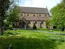 St Mary's Church is a Roman Catholic church in Madeley, Shropshire, England. It was built from 1852 to 1853 and was designed by Joseph Hansom in the Gothic Revival style. It is located on the corner of the High Street and Hanover Close. From 1769, the church congregation went to the presbytery next to the church, where Catholic Mass was celebrated in secret in a chapel. According to Historic England, it "is a very rare survivor of a house," and a Grade II listed building.[2]