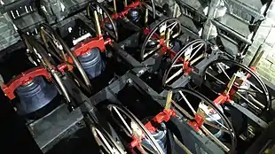 The restored and recast bells arrived back in Mirfield in March 2016 and were first rung just after Easter.[32] The result has been hailed as "superb"[33] and the bells at Mirfield are now considered "amongst the finest rings of ten in the country". The tower is notable for being one of only half a dozen towers remaining to have a complete set of 'Yorkshire tail ends', a variation on normal ropes featuring an additional woollen sally on the end of the rope for grip.[34][33][35]