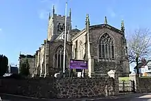 The church dates from the 13th to 15th centuries, but was heavily restored and underpinned between 1878 and 1880[3] at a cost of £5,300 (equivalent to £561,300 in 2021).[4] Decayed foundations were replaced by a solid base of 2 ft of Portland cement and granite chips. Arches and windows which had previously been bricked up were opened out again. A new roof was installed, reusing as much of the medieval carved oak as possible. Mr. Goodwin of the Lugwardine Works, Hereford provided encaustic tiles to pave the chancel. Mr Powell of Whitefriars carved a new reredos for the high altar. The old high backed pews were removed ready for new seating. The three entrances were supplied with new oak doors, and a new floor was laid in the belfry. The work was carried out to the designs and supervision of the architect Arthur Blomfield.