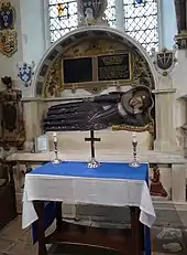 The Norbury chapel, to the north of the chancel, was built about 1490 by Sir John Norbury (died 1521), to commemorate the victory at the Battle of Bosworth. His memorial, showing a kneeling knight, is in the east wall of the chapel. There is a monument to Sir Thomas Vincent (died 1613) and Lady Jane Vincent (died 1619) by the north wall, and by the east wall is a monument to Lady Sarah Vincent (died 1608), their daughter-in-law; these have life-size painted effigies.[2][3]