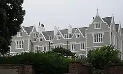 George Basevi designed the Hall in the Early Tudor style in 1836, "with mullioned windows and a cross above the central gable", and the Marquess of Bristol donated nine acres of land to build the school.[1][2][3] Rev. Henry Venn Elliott founded the school for the "daughters of poor clergy" in 1836.[4] Elliott chose to locate the Hall in Brighton because "the Prince Regent had made it a popular place to live", and Elliott believed there would be many wealthy families in that locale seeking governesses. Early school registers, however, do not show many graduates were thus employed.[1]
