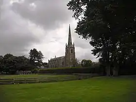 The fabric of the present church dates from 1822 when the nave, designed by Robert Roper, an architect from Preston, was built.[9] The cost of the nave was £5,000 (equivalent to £540,000 in 2021).[1][10] In 1843–44 the steeple, designed by the Lancaster architect Edmund Sharpe, and built in Longridge stone, was added at the west end.[11] The foundation stone for this was laid on 21 November 1843 by Thomas Clifton of Lytham Hall.[12] In 1853 the chancel was rebuilt, probably by Joseph Hansom, to make the altar visible from the nave.[3] The north and south galleries were removed in the middle of the 20th century and the area under the west gallery has been turned into a separate room.[9] In 2004 it was discovered that the spire had developed structural problems because the iron ties reinforcing the stones had corroded. An appeal to repair the spire was launched.[13]