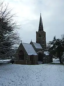 The tall church tower has a peal of six bells. Originally the peal consisted of just three bells, cast by Henry Oldfield's foundry in Nottingham, two of which remain; the oldest dates back to 1579 and is the second oldest bell in Nottinghamshire. Two more bells were added in 1849/50 and a sixth bell in 1977 purchased for the sum of £320 from St Andrews church Watton at Stone Hertfordshire[3] to commemorate the Silver Jubilee of Elizabeth II. The weights of the bells range from 4cwts 86 lbs (treble) to 17cwts 97 lbs (tenor). The installation has recently been restored by John Taylor & Co, a large bell foundry in nearby Loughborough who cast a number of the bells.[4] The bells are rung for Sunday morning services and at fortnightly practice sessions.