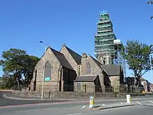 ![]() St Paul's Church, Seacombe, during reconstruction of the spire | |