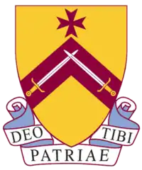 Officially granted by the Earl Marshal in 1961, the College coat of arms displays crossed swords and the Maltese cross to represent St Paul in the official colours of gold and gules. The College motto, Deo Patriae Tibi, can be translated "For God, Country and Thyself" or, more poetically, "God, Thy Native Land and Thee."[12]