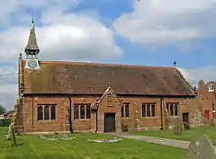 The church was built in 1627 as a combined chapel and school by Thomas Moulson, a former native of the village. He had moved to London and become a master grocer. He was Member of Parliament for the City of London in 1628 and Lord Mayor of London in 1634. Shortly before his death in 1638, he set up a trust to maintain the church and the school.[3] In 1812 its use as a school ended. As the state of the church had become neglected, a considerable restoration was carried out between 1878 and 1890, the first Duke of Westminster contributing £200 of the total cost of £600.[4] This restoration, with the addition of a vestry, is attributed to John Douglas.[5]