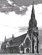 Pugin also designed the sacristy and presbytery in 1845–6. The Lady Chapel, smaller than in Pugin's original design, was added in 1850. In 1858 Pugin's son Edward Welby Pugin (1834-1875) built the school. The chancel and south chapel, in keeping with Pugin's plans and manner, were added in 1887-89 by the Scottish architect Frederick Walters (1849-1931), who also did further work on St George's Cathedral, Southwark.[5][6]