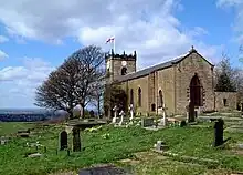 St. Thomas' Church is at the top of a lane overlooking the village of Mellor, Greater Manchester, England with views over Manchester, Cheshire and beyond. It is recorded in the National Heritage List for England as a designated Grade II listed building.[1] The church contains the oldest wooden pulpit in England and a late 12th-century Norman font. It is an active Anglican parish church in the deanery of Chadkirk, the archdeaconry of Macclesfield, and the diocese of Chester.[2]