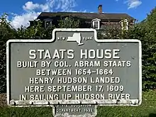 The Staats House is a historic building located along the Hudson River near Stockport, Columbia County, New York, United States. The first house at this site was burned and rebuilt on the original foundation c.1664.[1]