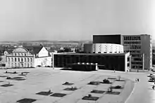 On the orders of the German emperor Kaiser Wilhelm II, a theatre was built in 1909 possessing one of the largest stages in the country and seating for an audience of over 1,450. The building was heavily damaged during World War II. The architectural competition for a replacement was won by Hans Scharoun but his ideas were not implemented – instead, the plans of architects Paul Bode and Ernst Brunding were realized; construction finished in 1959 (the competition models are on display at the Kassel City Museum). In 1989, an additional auditorium with 99 seats, the studio stage TIF – Theater im Fridericianum (Kassel), was erected.