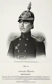Staff captain, Russian artillery, wearing a Pickelhaube, about 1858