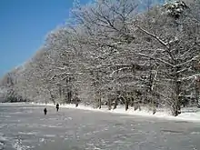 Today the park retains its original design, broadly patterned upon an English landscape park, with an elongated axis, wide curving paths, lawns, and numerous trees, as well as a meadow flooded for ice-skating in the winter. The botanical garden is laid out as a display garden, with geometric pools, arcades, and high hornbeam hedges. The orchard contains a number of heritage fruit varieties including Westfälischer Gülderling and Schöner aus Wiedenbrück.