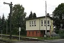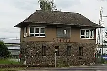 About 250 metres north of the station is another signal box built in 1925, also for the Lower Westerwald Railway. It is a small building with a brick ground floor, plastered first floor and a hip roof.