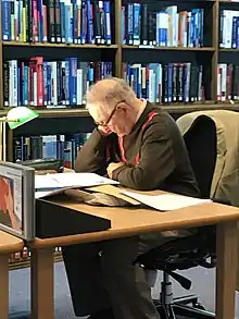 Gelbier reading in the Royal Society of Medicine library, 2017