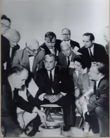 Spisiak was named the national water conservationist of the year by the National Wildlife Federation.[8] The award was presented to him at a dinner in Washington D.C. in January 1966. At that dinner he was seated next to Lady Bird Johnson who was a lifelong advocate for beautifying the nation’s cities and highways. He invited her to visit Buffalo for a personal tour of the Buffalo River. She accepted the invitation and arrived in Buffalo on August 19, 1965, along with her husband, President Lyndon B. Johnson. During the tour Spisiak showed President Johnson a bucket of sludge that had been taken from the Buffalo River. He told LBJ; "They're dumping 175,000 cubic yards of this slop right out in the lake every year from the Buffalo River. They're dumping 4.5 million cubic yards every year from 15 ports.