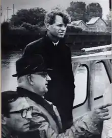 Shortly after Robert Kennedy took office as a US Senator from New York State, he took an interest in Spisiak’s activates. Kennedy assigned one of his “Boiler Room Girls”, Mary Jo Kopechne to assist Spisiak whenever he was in Washington to do research. On June 17, 1965, Spisiak took Kennedy and Buffalo Congressman Max McCarthy on a boat tour of the river resulting in Kennedy’s commitment to support cleanup efforts.