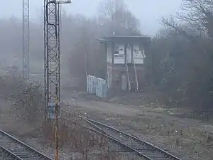 ![]() The now disused signal box near the site of the station in 2008 | |