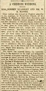 The family moved to Stapeley House in about 1882 when Robert retired from the military forces. He appears to known many people in high society as in 1904 his daughter's reception was held at Stapeley House and the guests included many notable people including General Baden-Powell. The newspaper article about the wedding is shown.