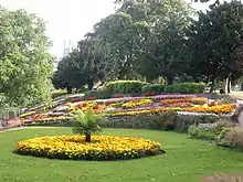The County Borough of Burton upon Trent demolished Stapenhill House and laid out gardens on the site.[1] Much of the original layout was retained. Two bandstands (one has since been demolished) and a children's play area were later added.[3][4] A sundial in the gardens marks the spot of the original house.[5] Some of the site was lost in 1985 to allow construction of St Peter's Bridge which is on viaduct and decorated with flower containers.[1]
