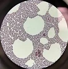 | 1000x magnification of a Gram-stained sample of Staphylococcus xylosus | |