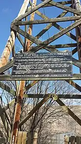 The Star Mine Suspension Bridge is a 117-metre-long pedestrian suspension bridge across the Red Deer River in Drumheller, Alberta, Canada. Constructed in 1931, it was built for the coal workers of Star Mine.[1] In 1958, the Alberta government rebuilt (and currently maintains) the bridge to "commemorate part of the colourful mining history of the Drumheller Valley."