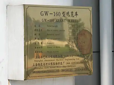 - Shanghai Amusement Machine Engineering Co - the builder of the wheel