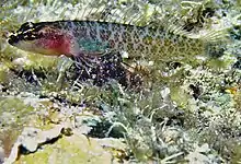 Starksia spinipenis, the phallic blenny, is a species of labrisomid blenny native to the Pacific coast of Mexico from the Gulf of California to Acapulco. It prefers shallow sandy areas with weed growth. This species can reach a length of 5 centimetres (2.0 in) TL.[2] The specific name is a compound noun if spinis meaning "spine" and penis, a reference to the first spine in the anal fin of the males which is elongated and free of the fin membrane and is modified as a copulatory organ, a characteristic of the genus Starksia.[3]