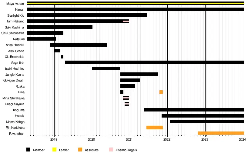 The stable has been considered the union of the well-meaning ladies of the World Wonder Ring Stardom promotion since 2017 and became an official faction in the course of the Stardom Draft from April 15, 2018, with Mayu Iwatani as the basic leader, and Starlight Kid, Saki Kashima, Shiki Shibusawa, Natsumi and Tam Nakano as their five picks. Hanan also remained part of them without being mentioned.[4]