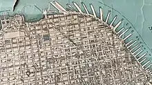 The railroad connected the Port of San Francisco to many waterfront docks and to industries and warehouses which were adjacent to the waterfront. In its early years, it operated dual-gauged track to accommodate the North Pacific Coast Railroad and South Pacific Coast Railroad.[3] It would eventually have 67 miles (108 km) of trackage and general offices in the Ferry Building. Its function was to switch railroad cars from four major railroads to points along its system and vice versa. At the southern portion of the line, a track along King Street (passing the location now occupied by Oracle Park) connected with the Southern Pacific. A train ferry slip at Pier 43 allowed interchange with the Northwestern Pacific, the Western Pacific, and the Atchison, Topeka & Santa Fe railroads. To reach its northern terminus in the Presidio, the line passed through Fisherman's Wharf, Aquatic Park, and Fort Mason Tunnel.