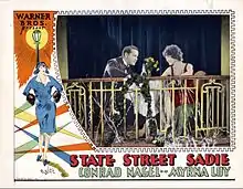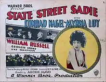 State Street Sadie is a 1928 American sound part-talkie crime drama film directed by Archie Mayo. In addition to sequences with audible dialogue or talking sequences, the film features a synchronized musical score and sound effects along with English intertitles. The soundtrack was recorded using the Vitaphone sound-on-disc system.[1] This is regarded as a lost film.[1][2][3][4]