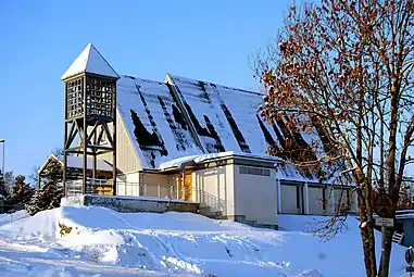 Stathelle Church (Norwegian: Stathelle kirke) is a parish church of the Church of Norway in Bamble Municipality in Vestfold og Telemark county, Norway. It is located in the town of Stathelle. It is the church for the Stathelle parish which is part of the Bamble prosti (deanery) in the Diocese of Agder og Telemark. The white and gray, brick church was built in a rectangular design in 1964 using plans drawn up by the architect Bjørn Ljungberg. The church seats about 260 people.[1][2][3]