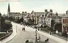 The road is a mix of semi-detached and detached houses in the west, small apartment blocks, and large office buildings in the east near the station that are characteristic, according to Pevsner and Cherry, of the fashion in the 1960s for out-of-town offices near transport hubs.[1] Most of those blocks have been converted to flats in whole or part since 2000, including Basil Court, Endeavour House, Kingmaker House, Groupama House, Comer House, and Castle House.[2]