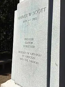 13. 1 2 3 4 "Statue of Editor Will Be Colossal: Larger Memorial Planned to Harvey W. Scott". The Sunday Oregonian. October 5, 1930. p. 6.