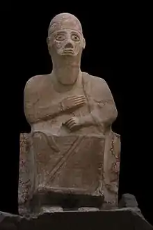 - 1 2 Longman III, Tremper, (1991). Fictional Akkadian Autobiography: A Generic and Comparative Study, Eisenbraums, Winona Lake, Indiana, p. 60: "...discovered by Sir Leonard Woolley in 1939...Although found in the debris of Level IB (ca. 1200 B.C.), the statue was dated by most scholars back to Level IV (ca. 1500 B.C.)..."
