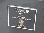 An outdoor 2006 bronze statue of Irv Kupcinet by Preston Jackson is installed in Chicago, in the U.S. state of Illinois.[1][2][3] It is located on the sidewalk of Wacker Drive near its intersection with Wabash Avenue, just steps from the Chicago Riverwalk. The left hand of the sculpture gestures in the direction of Tribune Tower across the Chicago River.