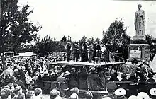 The memorial was unveiled on 25 July 1923 at a memorial service for Cruickshank.[1][3] The speakers at the ceremony included Cruickshank's former classmate Dr Emily Siedeberg, representing the New Zealand Medical Women's Association, the Member of Parliament for Waitaki, John Bitchener, and the chair of the Waimate County Council, Thomas Lawson Hart. Miss M. Allen was also present, as a representative of the Otago University Women's Association. The unveiling was performed by Cruickshank's landlady of 23 years, Mrs Barclay.[5]