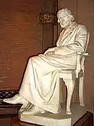 Boehm had executed a statuette in plaster of Carlyle in April 1874 at the request of Lady Harriet Mary Montagu.[2] Carlyle liked it and decided to sit for Boehm in the beginning of 1875, in order to produce a large marble version which now resides in the National Galleries of Scotland. At the first sitting, Carlyle announced brusquely, "storming in at the door in the guise of one of his own northern gales": "I'll give you twenty-two minutes to make what you can of me."[3][2] When Boehm punctually finished working, Carlyle was delighted enough to give him another twenty-two minutes, subsequently sitting often, writing: "He seems to me by far the cleverest Sculptor or Artist I have ever seen."[4] Boehm also produced a cast of Carlyle's hands[5][6] and a bust.[7] John Tyndall spoke at the unveiling of the bronze in 1882. The marble was presented by Archibald Primrose, 5th Earl of Rosebery in 1916.
