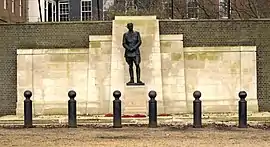 The statue of the Earl Kitchener is an outdoor bronze statue by John Tweed depicting Herbert Kitchener, 1st Earl Kitchener, installed in 1926 and located on the south side of Horse Guards Parade in London, United Kingdom.[1] The sculpture stands on a Portland stone plinth. It became a Grade II listed building in 1970.