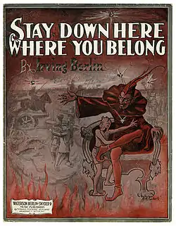 "Stay Down Here Where You Belong" was a pacifist song written by Irving Berlin in 1914. The lyrics depict a conversation between the devil and his son, the devil exhorting him to "stay down here where you belong" because people on Earth do not know right from wrong.[1]